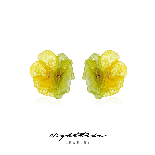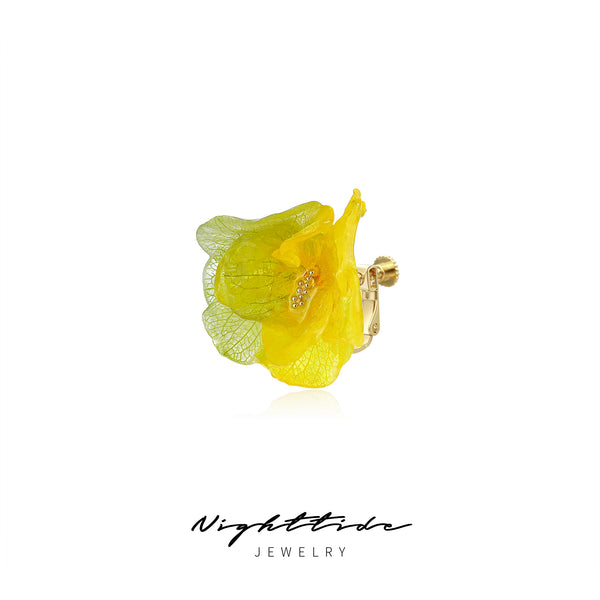 Material: 18k gold plated copper castings, hydrangea, epoxy resin glue