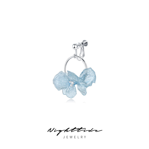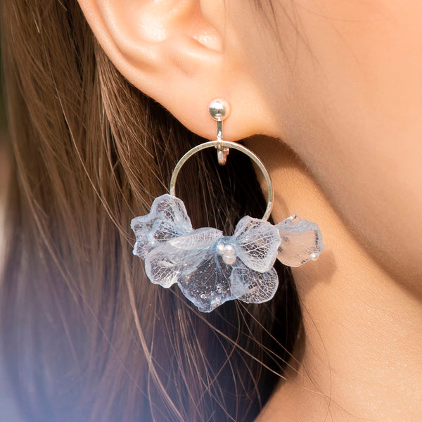 Material: Silver plated cooper castings, hydrangea, epoxy resin glue, artificial pearls
